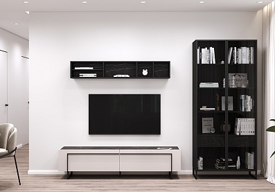 Тумба Милагро под телевизор с выдвижными ящиками Кашемир серый, Камень Пьетра, Черный