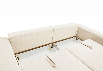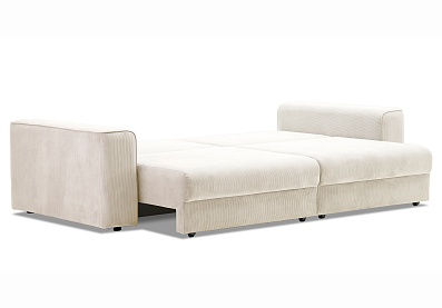 Диваны-кровати раскладные вперед — компактная мебель с удобным механизмом, которая позволяет экономить место в комнате (за счет скрытия половины спального места), при этом обеспечивая высокий уровень комфорта для своего владельца. Их трансформация происходит при помощи скрытого ремешка, потянув за который выдвигается передняя часть сидения, тянущая за собой остальные части матраса.