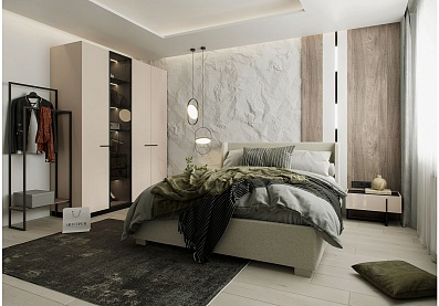 Шкаф Милагро Кашемир серый, Камень Пьетра, Черный графит