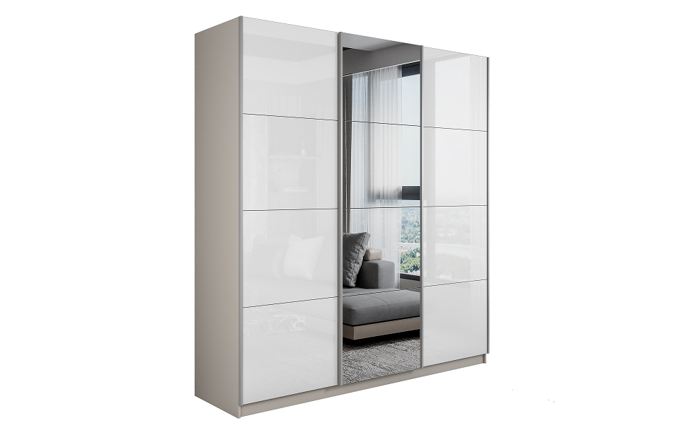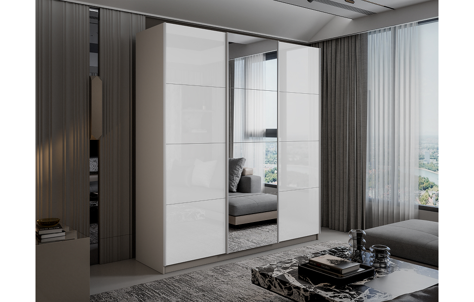 Цена на Шкаф-купе Lux 210х230х57 кашемир Белый глянец/Зеркало/Белый глянец от производителя , оплата удобным для вас способом!