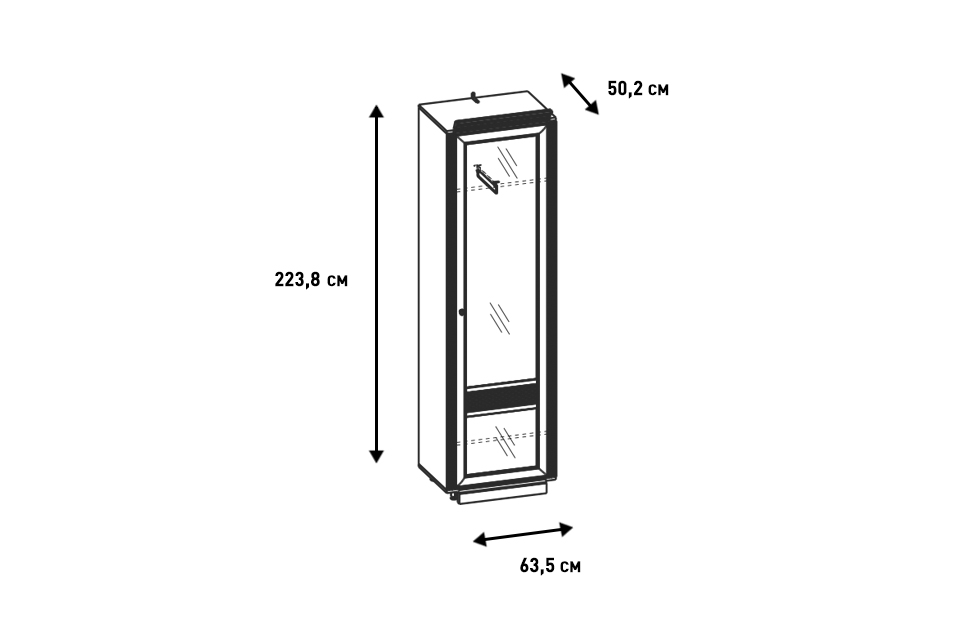 - Шкаф укомплектован 2 полками и выдвижной штангой для одежды;