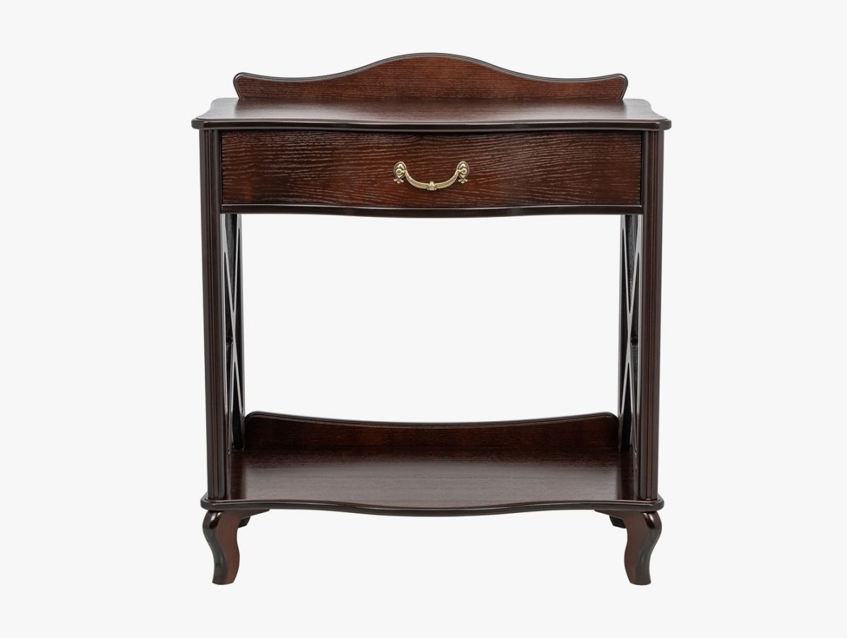 Узкий консольный столик «Джульетта» в цвете орех предназначен для декоративных целей — на небольшую поверхность можно поместить вазу, сувенир, необычную статуэтку. Внешний вид изделия соответствует интерьерному стилю прованс. Бежевый оттенок, фигурная форма, изогнутые ножки, фурнитура в цвете «античная бронза» превосходно впишутся и в классическую обстановку. Основание модели выполнено из МДФ, боковины и столешница — из ЛМДФ, прочие детали изготовлены из шпона натурального ясеня. Изюминка консоли — боковые части в виде декоративных элементов фахверков. В компактном ящике с бесшумным механизмом выдвижения можно хранить любимые книги, косметику, украшения, очки, различные мелочи.