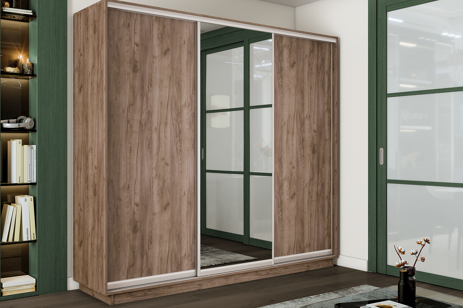 Шкаф-купе Премиум 3х дверный 2100х2400х600 Крафт табачный